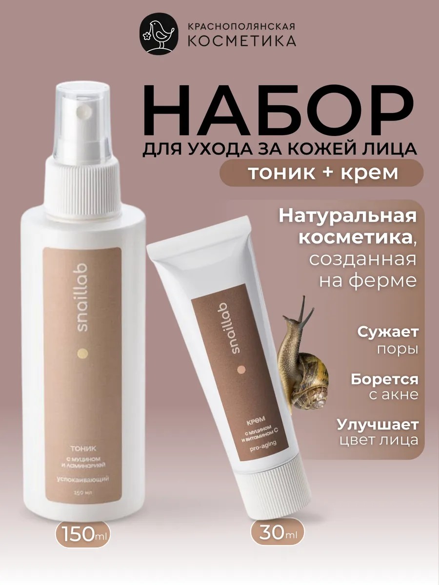 | Комплектация | Snaillab Крем для лица "Муцин и Витамин С"; Snaillab Тоник для лица "Муцин и Ламинария" |