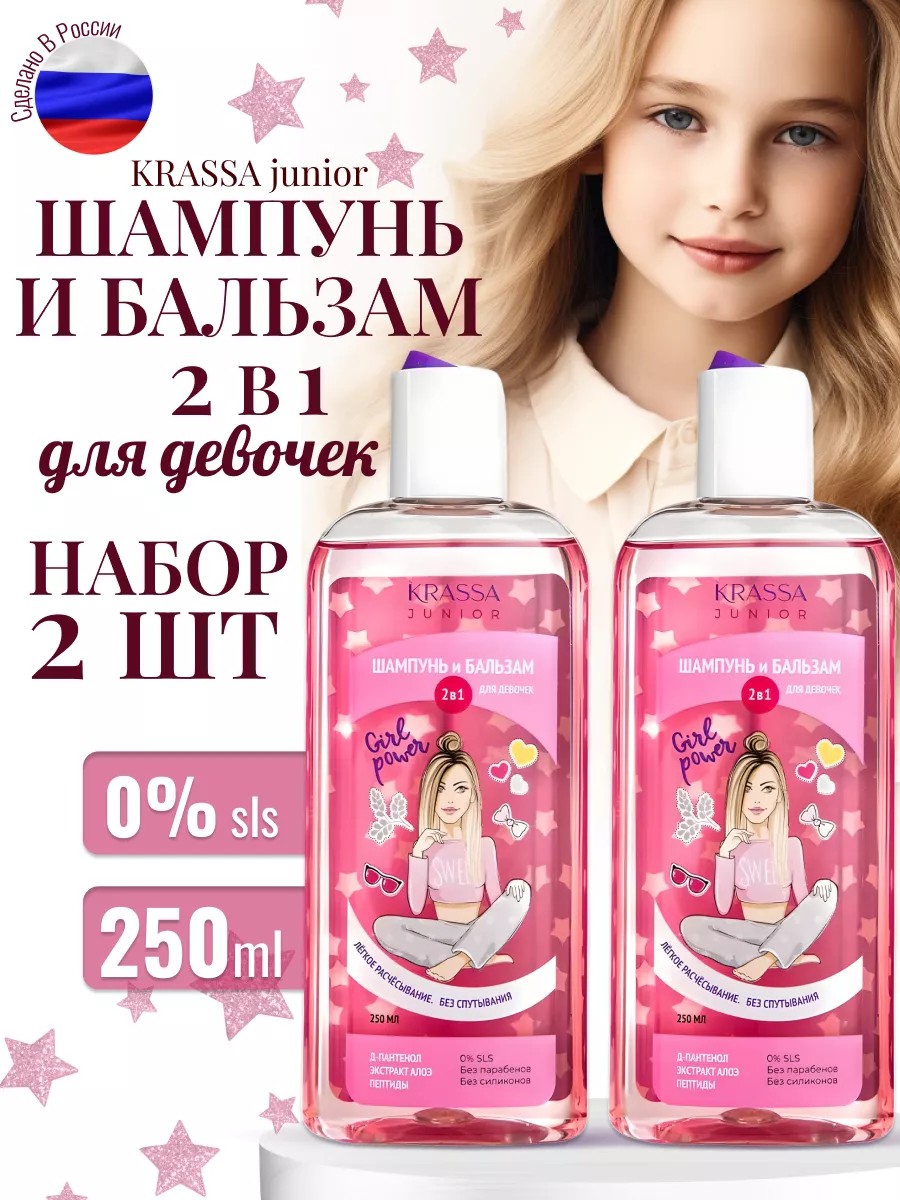 KRASSA Шампунь детский и бальзам 2 в 1, набор 2 шт
