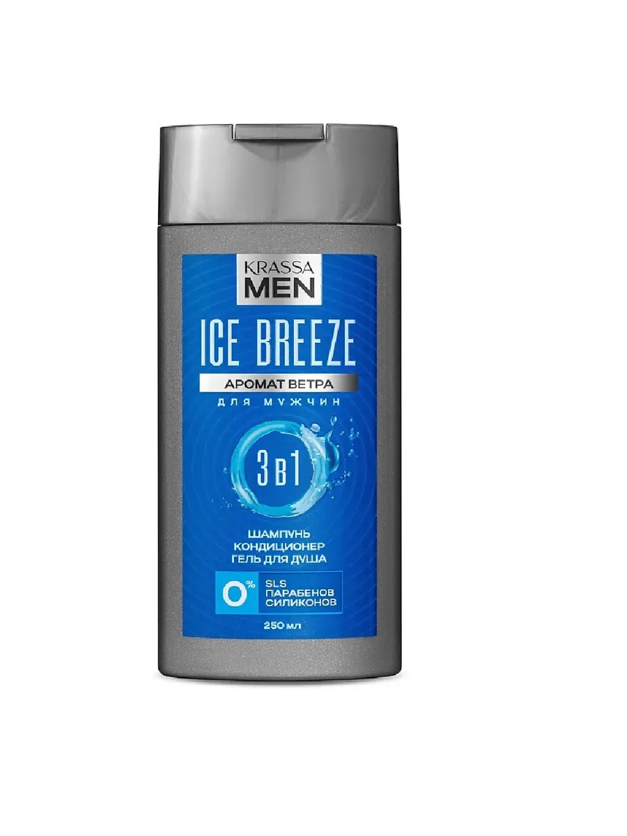 Krassa Men, Шампунь-кондиционер для волос и гель для душа Ice Breeze 3в1, 250 мл. Создан с любовью специально для мужчин!