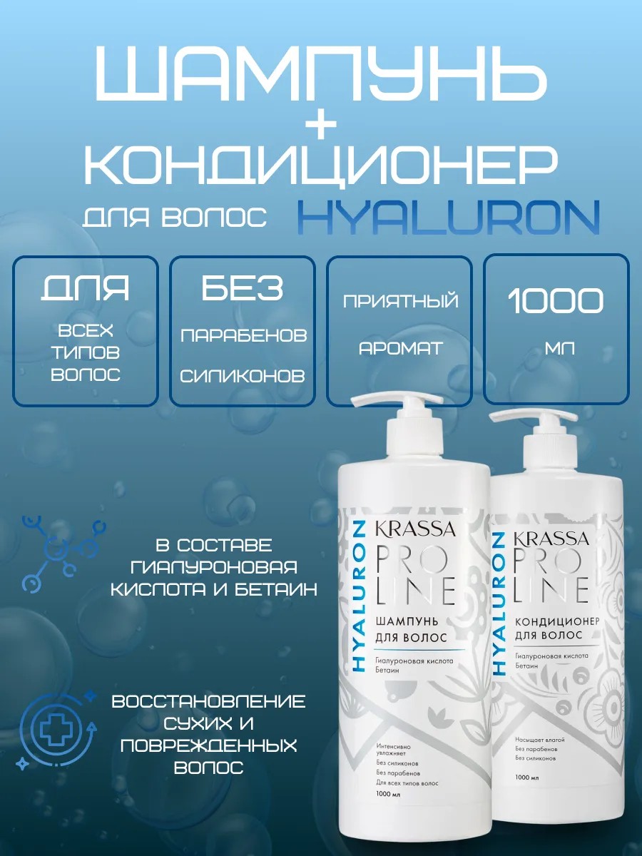 KRASSA КОСМЕТИКС Набор парфюмированный шампунь+кондиционер с гиалуроном 2л
