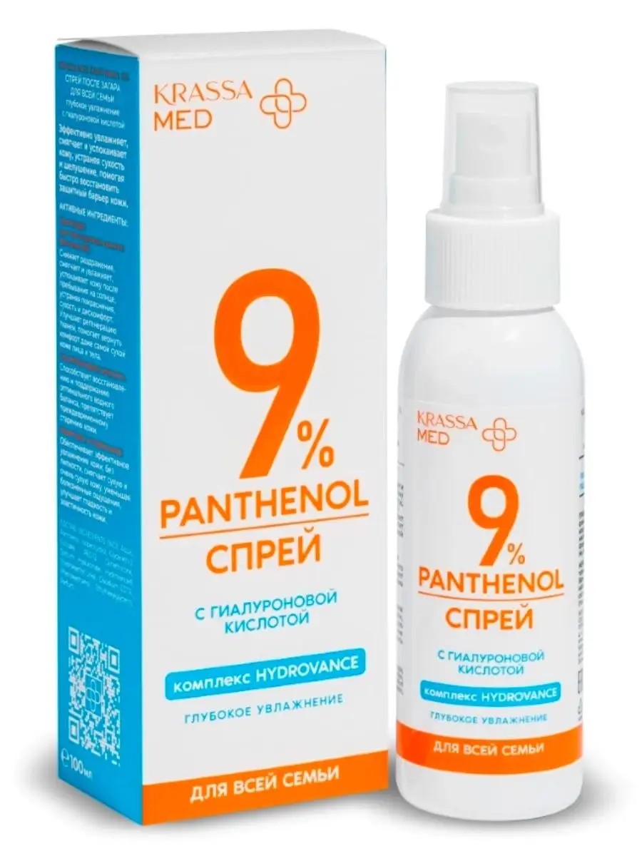 Krassa med panthenol 9% спрей после загара для всей семьи глубокое увлажнение с гиалуроновой кислотой 100 мл