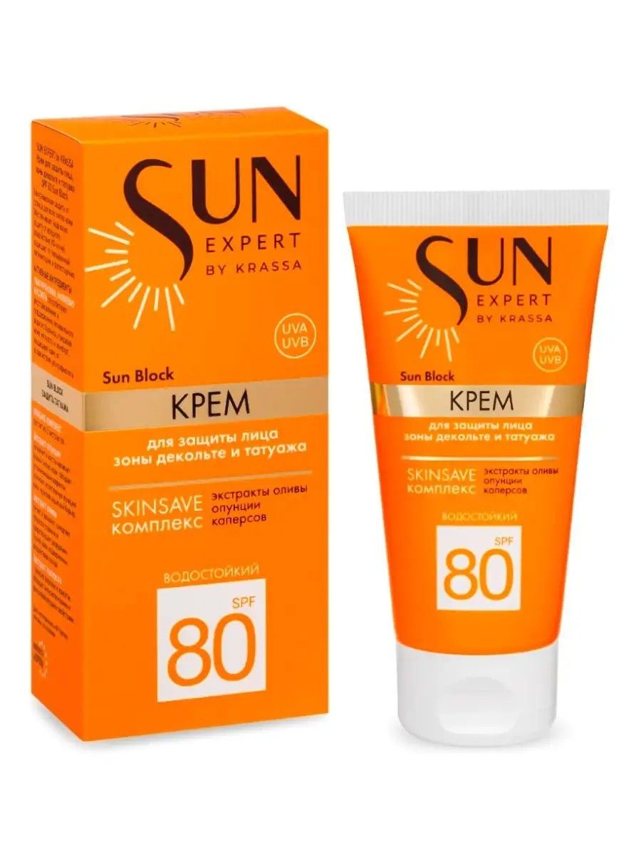 Krassa sun expert крем для защиты лица зоны декольте и татуажа spf80 sun block 50 мл