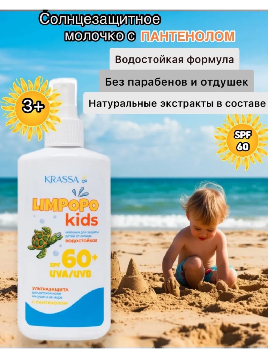 KRASSA Солнцезащитное молочко с пантенолом для детей LIMPOPO SPF 60+