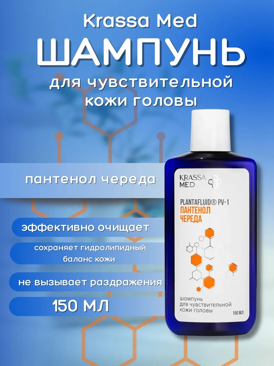KRASSA MED Шампунь для чувствительной кожи головы с Пантенолом и Чередой, 150 мл
