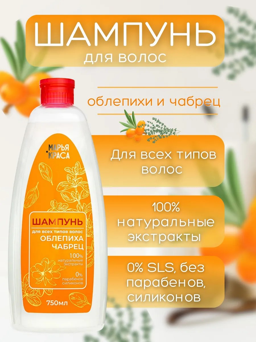 Шампунь «Марья-Краса» с экстрактами облепихи и чабреца — это отличное средство для ухода за волосами, которое не только очищает, но и восстанавливает их, придавая им естественный блеск и здоровье.
