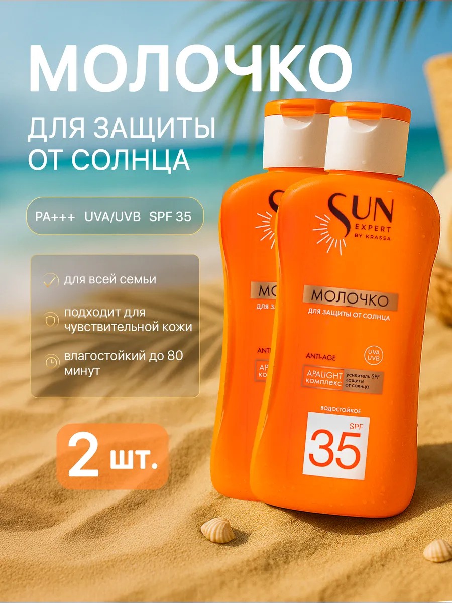Солнцезащитное молочко для загара на солнце SPF 35 2 шт