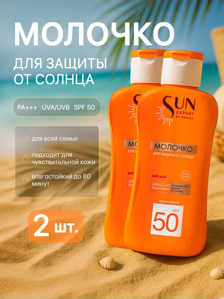 KRASSA Солнцезащитное молочко для загара на солнце SPF 50 2 шт