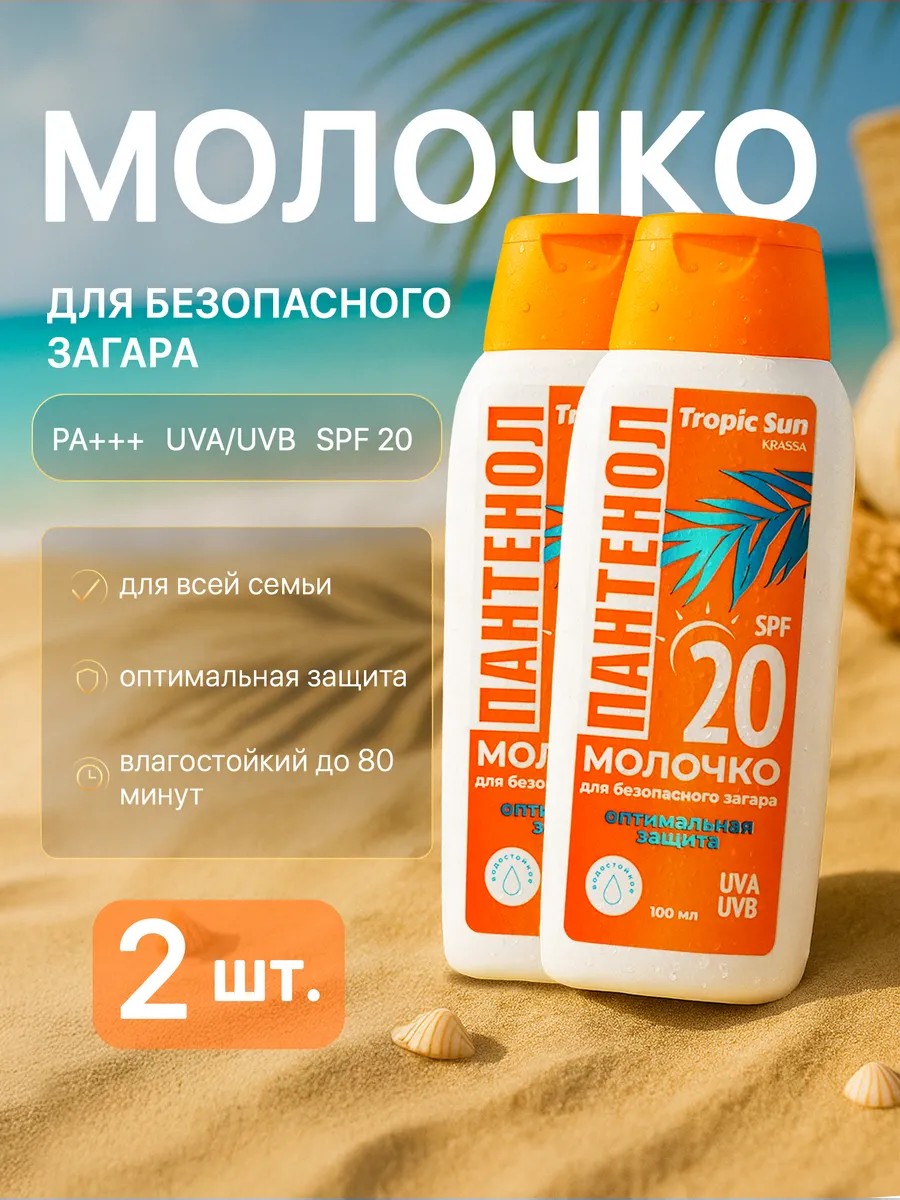 Солнцезащитное молочко для загара с пантенолом SPF 20 2 шт