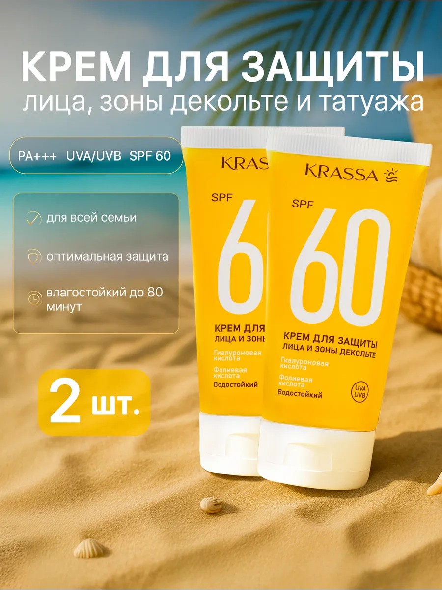 Солнцезащитный крем для лица и декольте SPF 60 2 шт