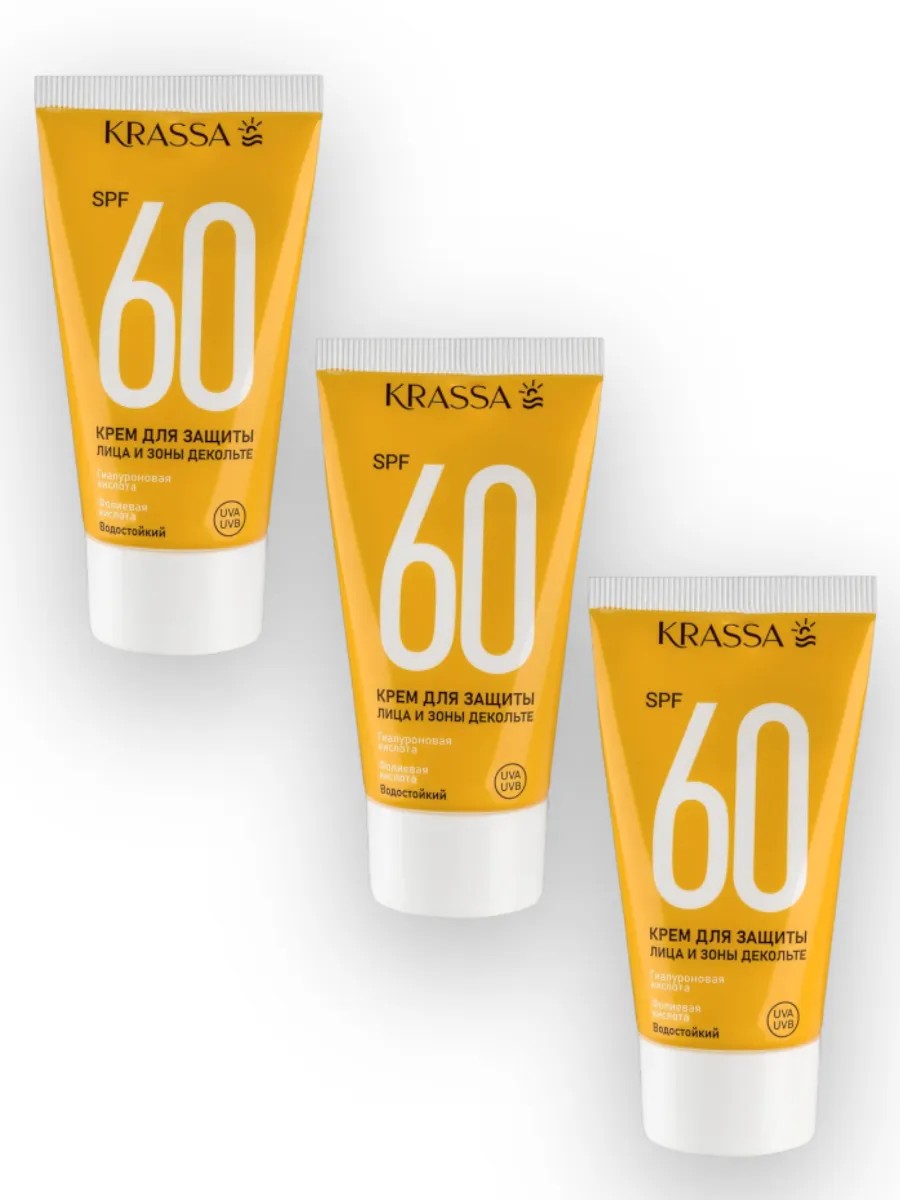 KRASSA Солнцезащитный крем водостойкий spf 60 50мл 3 шт.