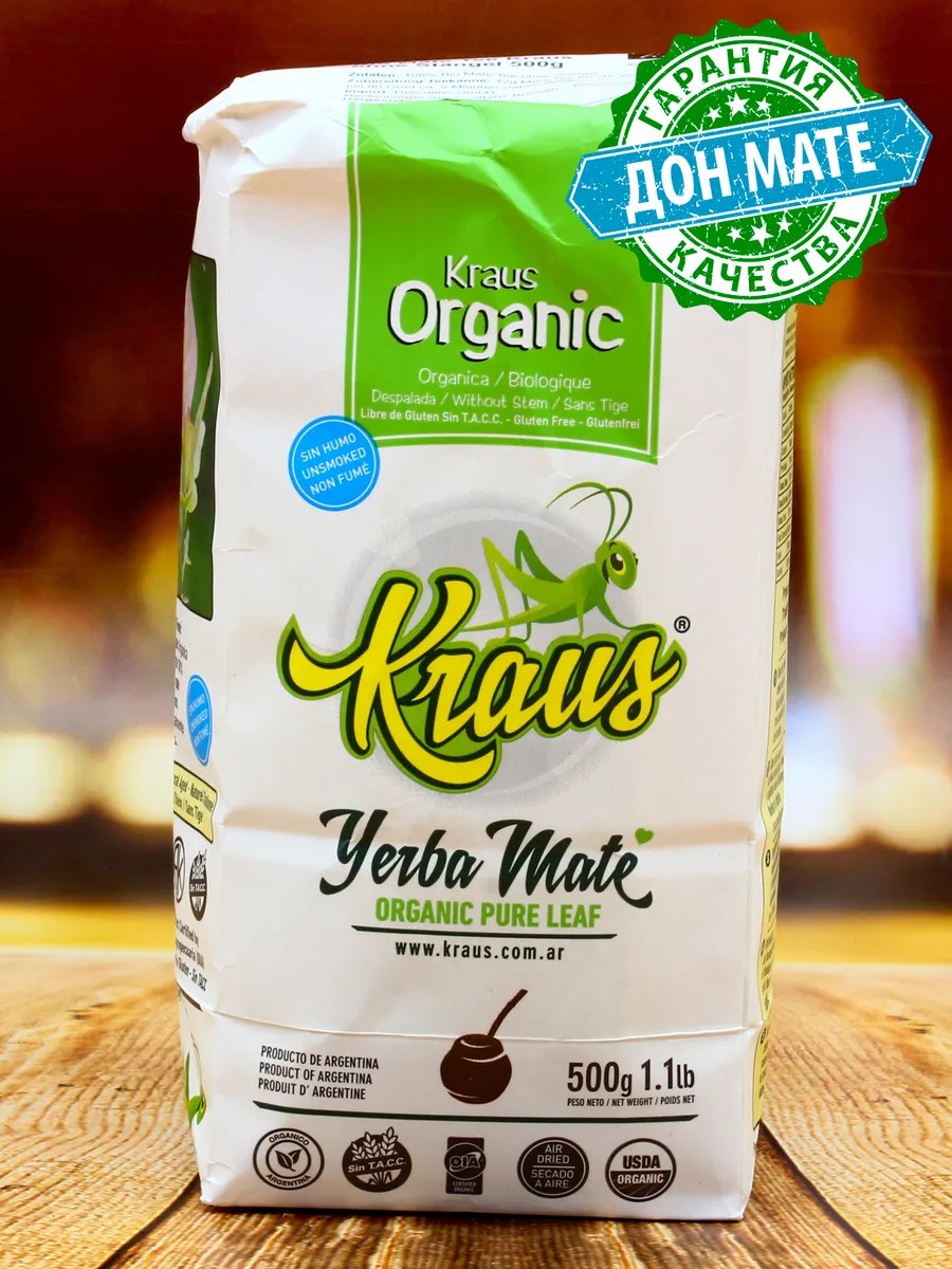 Аргентинская компания Kraus S.A., основанная в 1894 году, была первой в стране, получившей международный сертификат на производство органических сортов чая и мате. Фирма выпускает популярную в мире линейку экологически чистых сортов йерба мате Kraus, которые хорошо известны ценителям напитка за исключительное качество продукции. Мате Kraus Organic Pure Leaf (чистый лист) представляет собой специальный помол из чистого листа без стеблей и пыли. Произведен и упакован в Аргентине (Kraus S.A.).