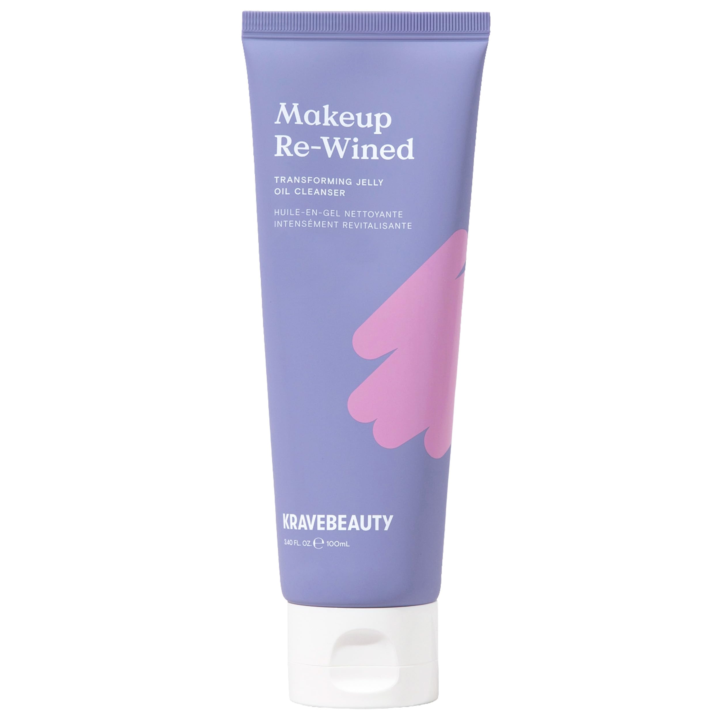 The color and texture of Makeup Re-Wined may naturally vary slightly from batch to batch. No worries! This is a normal occurrence when using naturally-derived ingredients and it does not impact the efficacy of the formula. KRAVEBEAUTY - KraveBeauty was founded in 2017 by skincare expert Liah Yoo, who started the brand to simplify the overwhelming world of skincare. We focus on creating timeless products that work in harmony with the skin, promoting a "less is more" approach with a focus on sustainability, rejecting fast-paced production and trend-driven products. Our mission is to prioritize people and the planet over profits, encouraging a mindful and intentional approach to skincare. KIND TO SKIN AND THE PLANET - We're PETA-certified, which means we never test on animals, and all our products are vegan and free from any animal-derived ingredients. We also care deeply about the environment, so we use recyclable packaging to reduce our ecological footprint. HOW TO USE - Apply a small amount to dry skin and massage gently to break down makeup and impurities. Add water to emulsify the product into a milky oil, then rinse thoroughly with lukewarm water. Follow with your regular cleansing routine if needed. Use it as the first step in your evening skincare routine. WHY IS IT DIFFERENT - The Makeup Re-Wined Cleanser gently lifts away makeup, waterproof SPF, and other oil-based impurities. It stands out by transforming from a jelly-like texture to a milky oil, offering an enjoyable yet mess-free cleansing experience. Ideal for makeup removal or oil cleansing, it is suitable for all skin types. JELLY CLEANSER - A one-of-a-kind jelly oil cleanser that makes cleansing fun and effortless. Makeup Re-Wined gently takes off makeup, sunscreen, and impurities using sustainably sourced, upcycled Grapeseed Oil. Easily melt away your beat from the day and rewind to a time with soft, clean skin. Future you will be so happy!.