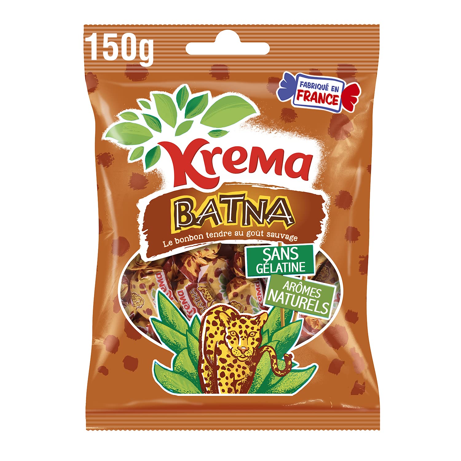 Krema Batna candies are unique: both soft and intense, they are made from a delicious blend of caramel, licorice, and anise. INGREDIENTS Sugar, glucose syrup, palm oil, skimmed milk powder, licorice extract, corn starch, stabilizer (acacia gum), emulsifier (E471), salt, natural flavorings, acidity regulator (sodium carbonates). Made in France. INSTRUCTIONS FOR USE Recommended for ages 12 and up. SAFETY WARNING For your health, avoid snacking between meals. See more