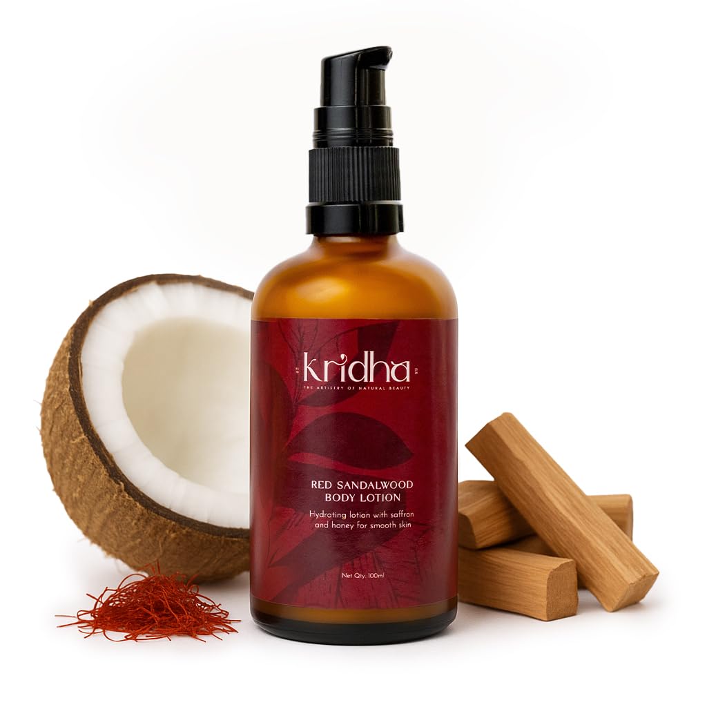 kridha Red Sandalwood Body Lotion With Saffron Honey & Coconut Oil - Deep Moisturizer for Women & Men - Summer Body Lotion for Smooth Glowing Skin 100ml