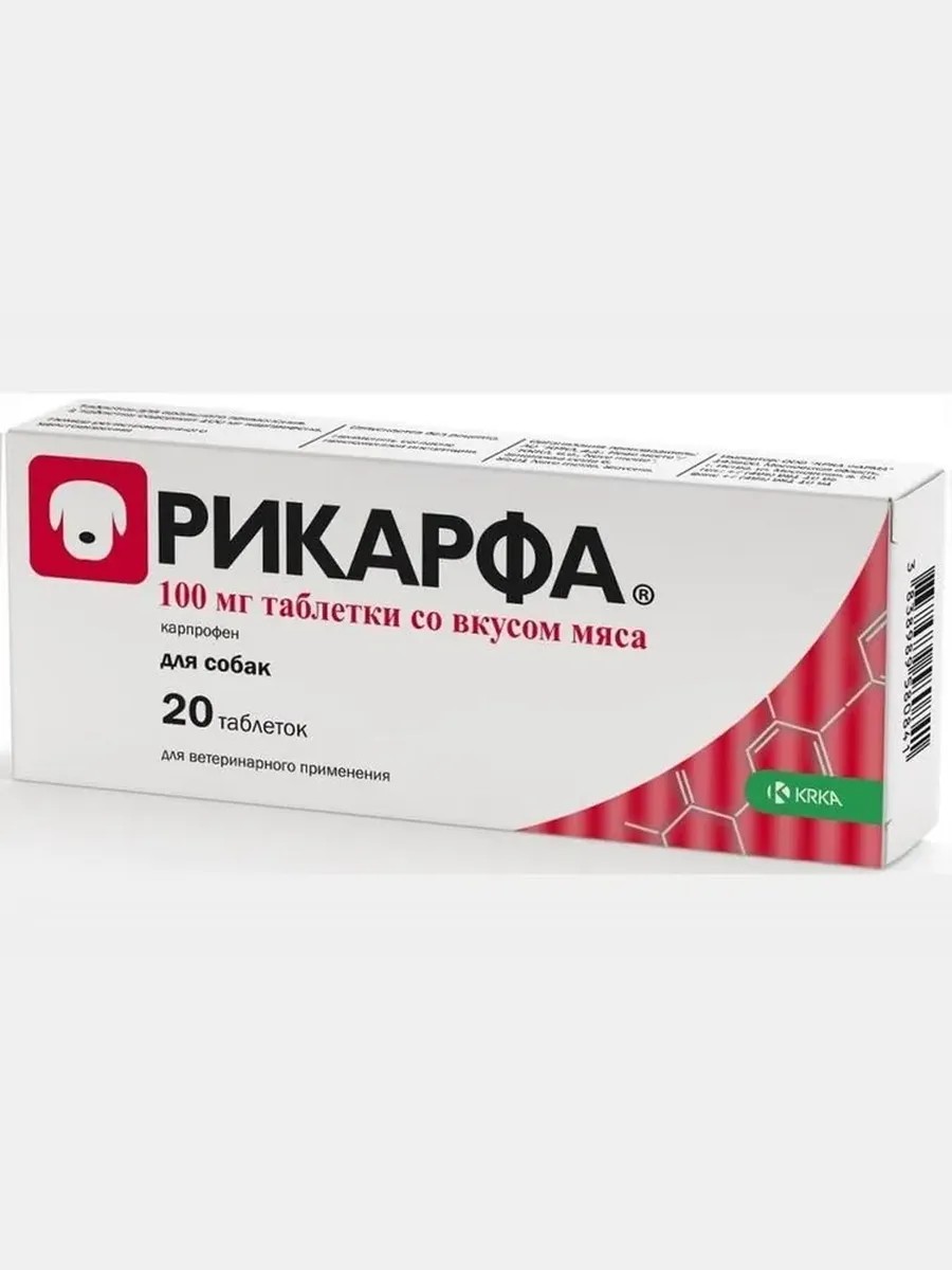 | Полное наименование товара | Рикарфа для собак 100 мг, противовоспалительные таблетки со вкусом мяса, 20 таблеток |