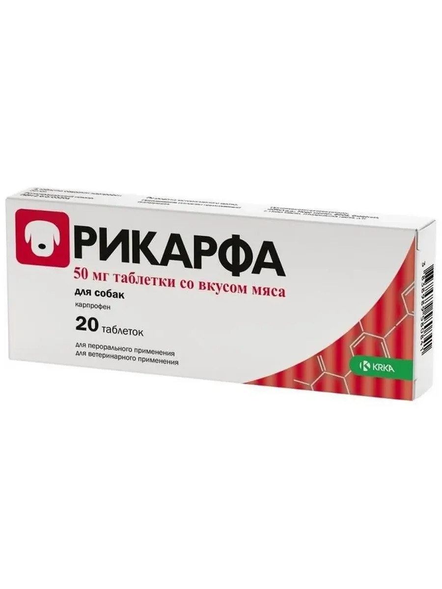 | Полное наименование товара | Рикарфа для собак 50 мг, противовоспалительные таблетки со вкусом мяса, 20 таблеток |
