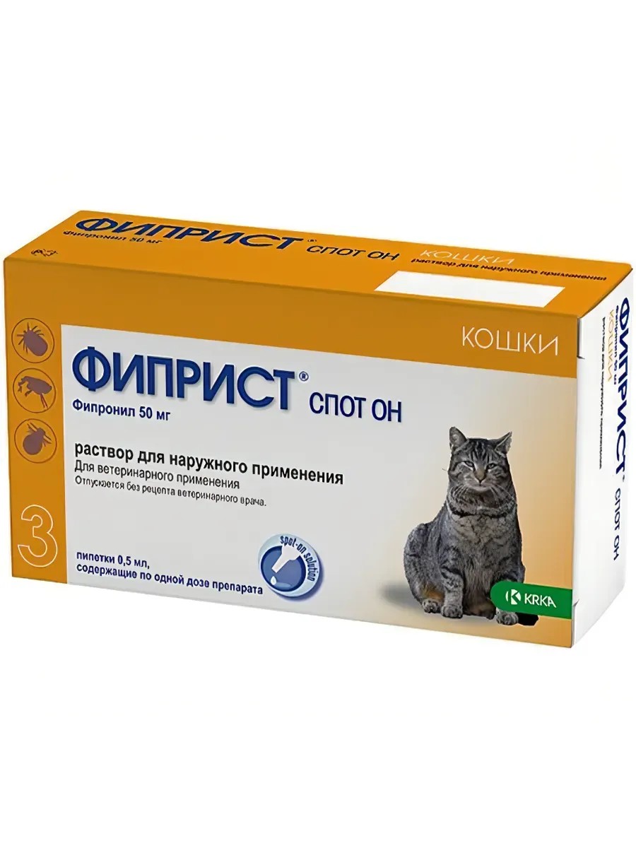 KRKA Фиприст СПОТ-ОН капли для кошек 0,5 мл 3 пип