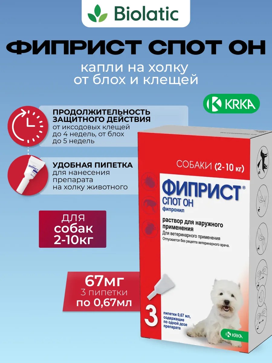 KRKA Фиприст СПОТ-ОН капли для собак 2-10 кг 3 пип