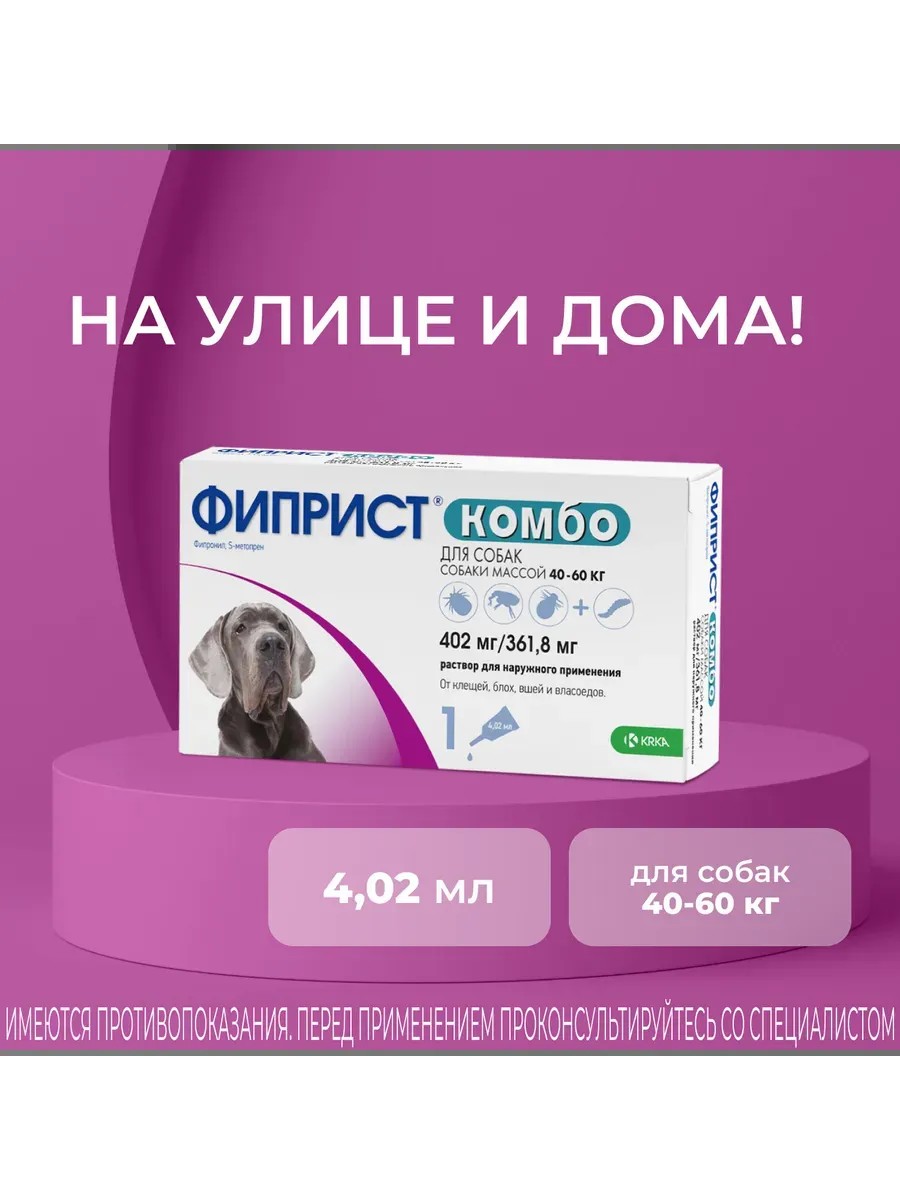 KRKA Фиприст Комбо для собак 40 - 60 кг, 1 пипетка