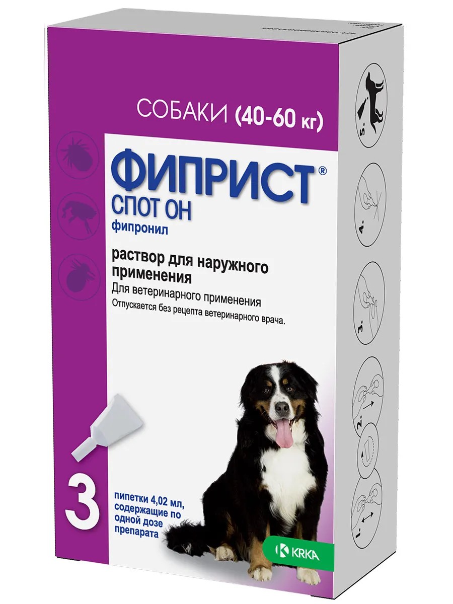 Fiprist Spot On solution for external use is prescribed to dogs and cats from 8 weeks of age for entomosis, otodectosis, tick infestation (ixodid, cheilitella), and also in the complex therapy of allergic dermatitis caused by fleas.