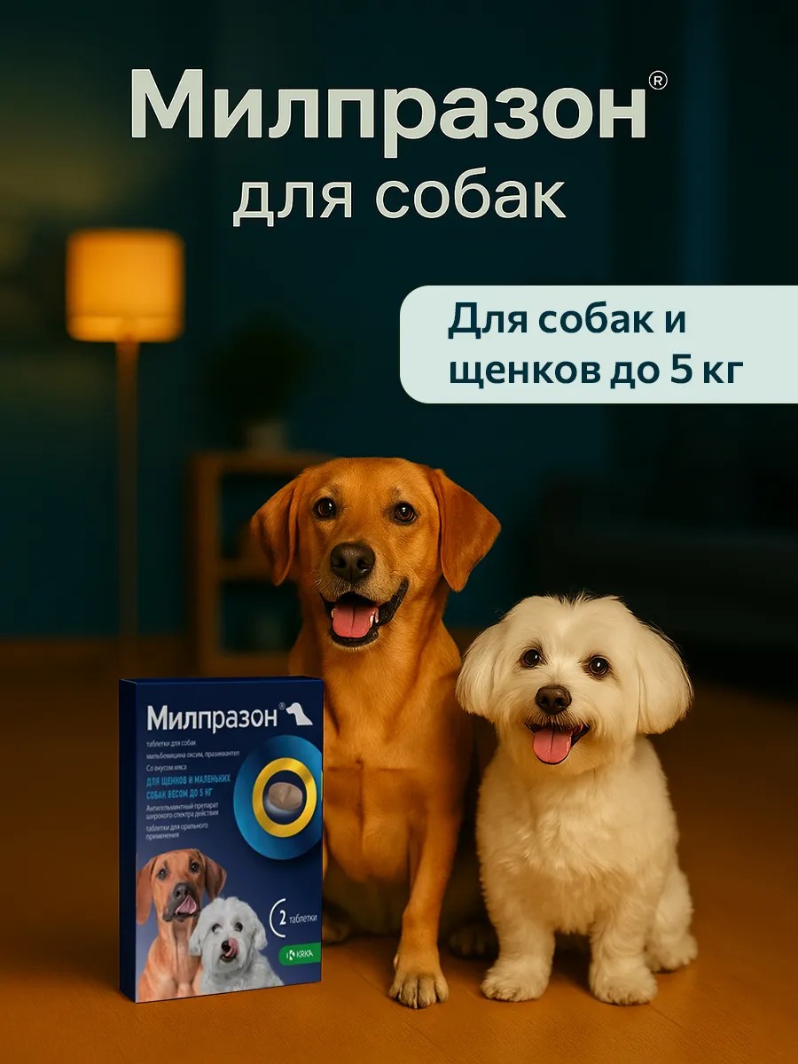 KRKA Милпразон 2,5 мг 25 мг — для щенков и мелких собак (0,5–5 кг…