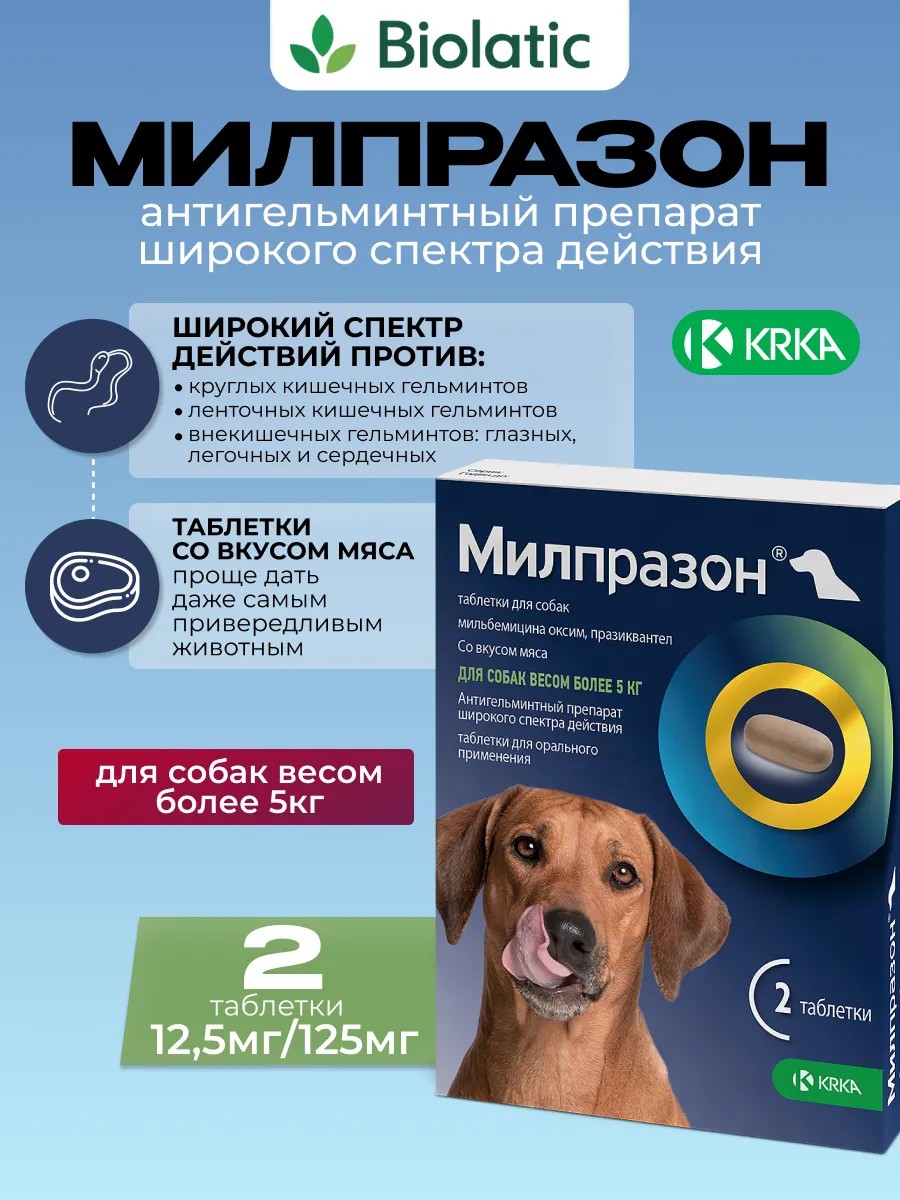 Милпразон антигельминтик для собак более 5 кг, 2 таб