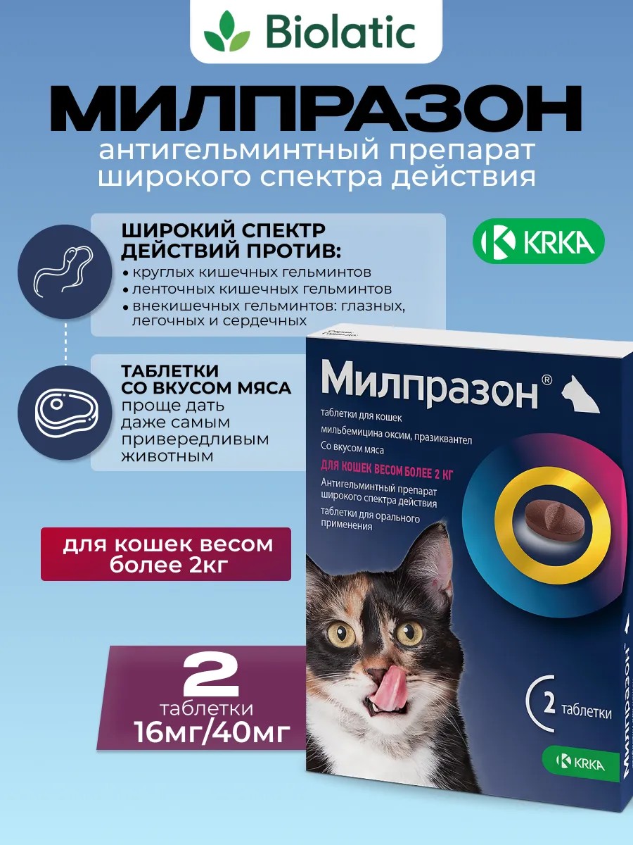 Милпразон табл. 2х16 мг 40 мг для взрослых кошек