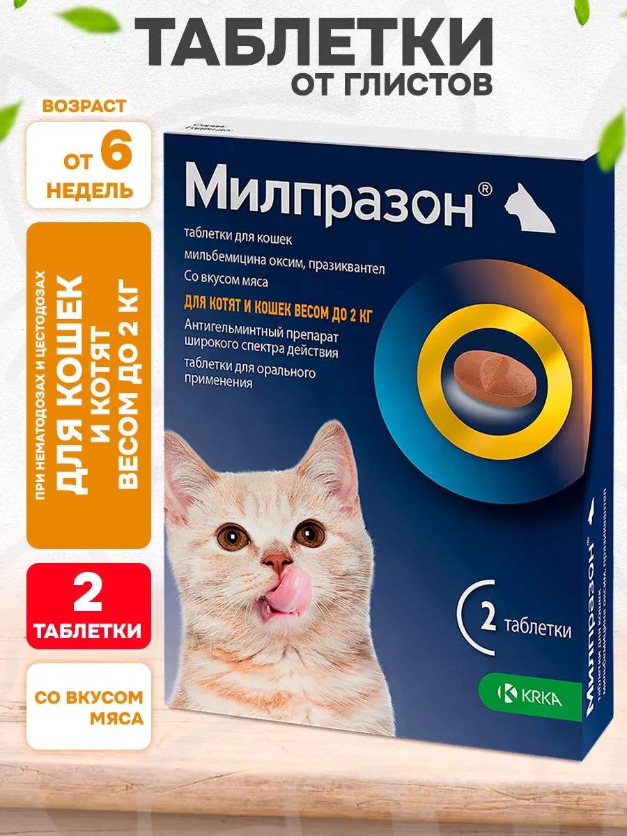 Милпразон таблетки от глистов для котят и кошек до 2 кг 2 т