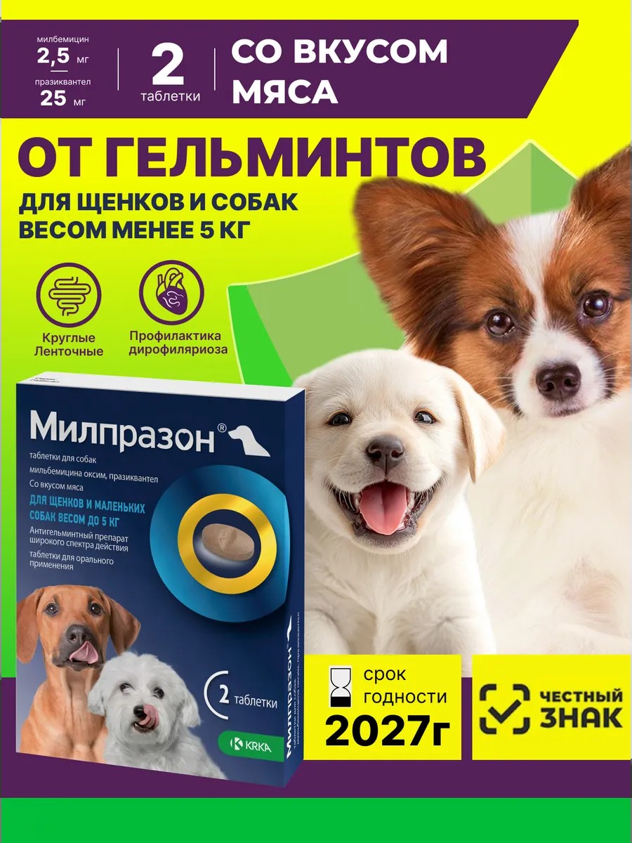 Милпразон таблетки для собак, 2х2,5 мг 25 мг