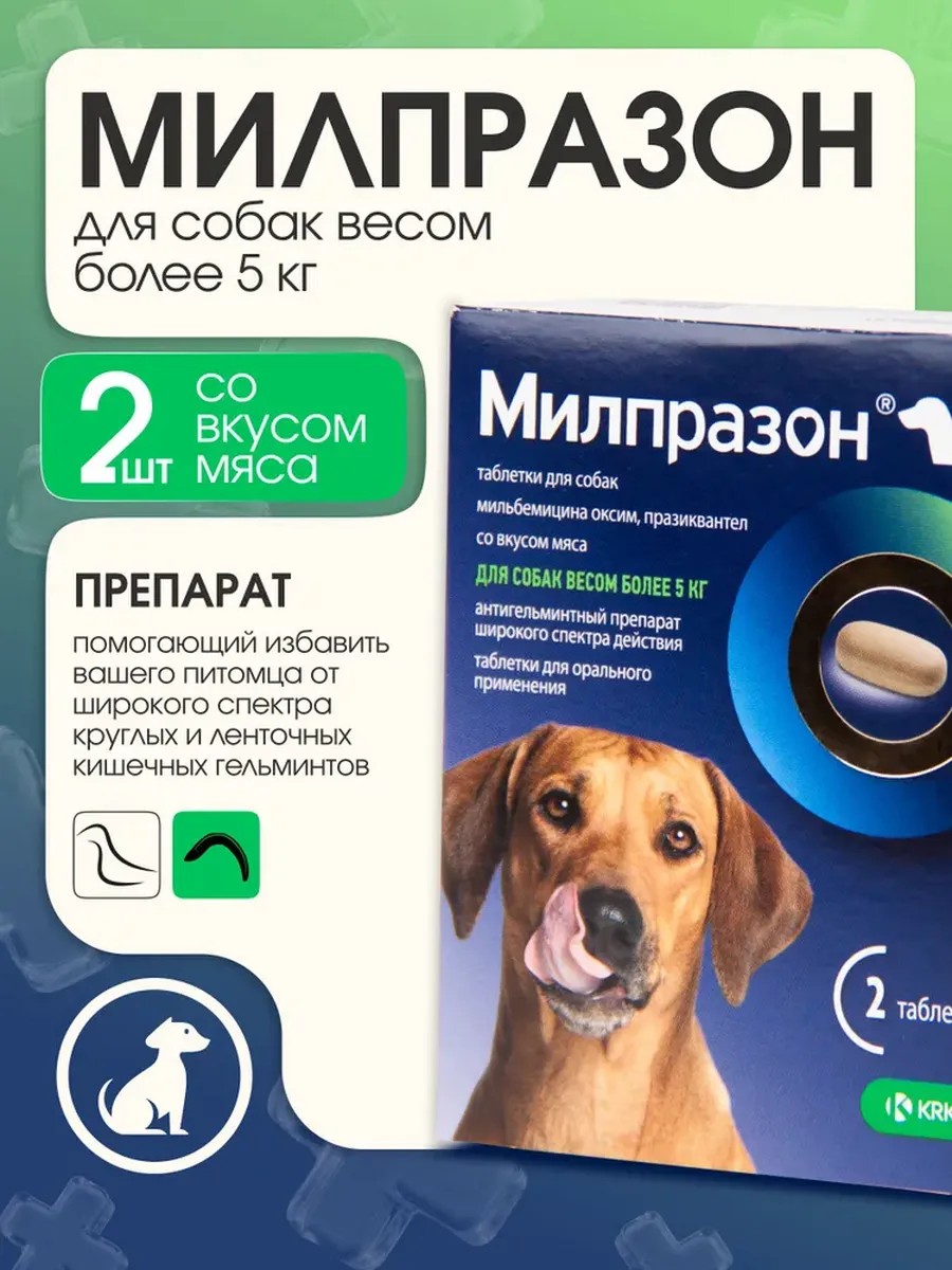 KRKA Милпразон таблетки для собак более 5 кг, 2 таб