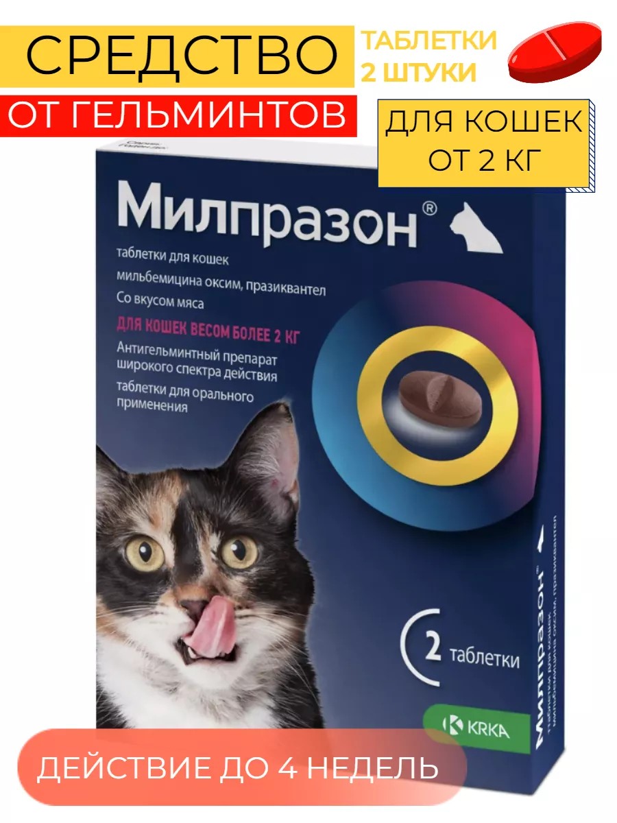 КРКА Милпразон - препарат для лечения и профилактики гельминтозов у кошек. Данное средство представляет собой таблетки, предназначенные для кошек весом от 2 кг. В упаковке содержится 2 таблетки.
