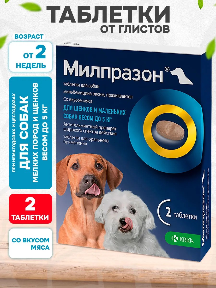 Милпразон таблетки от глистов для щенков и собак до 5 кг 2 т