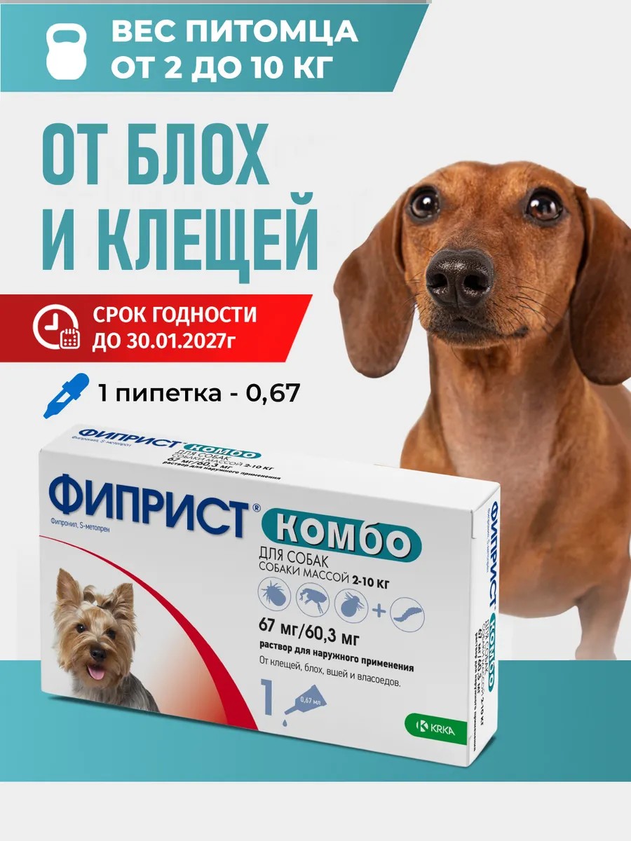 Защита от блох и клещей до 1 месяца. Фиприст комбо (Fypryst combo) - капли от блох и клещей, для нанесения на холку собакам весом 2-10 кг. Комбинированный инсектоакарицидный препарат контактного действия. Содержит в качестве действующих веществ фипронил и S-метопрен.