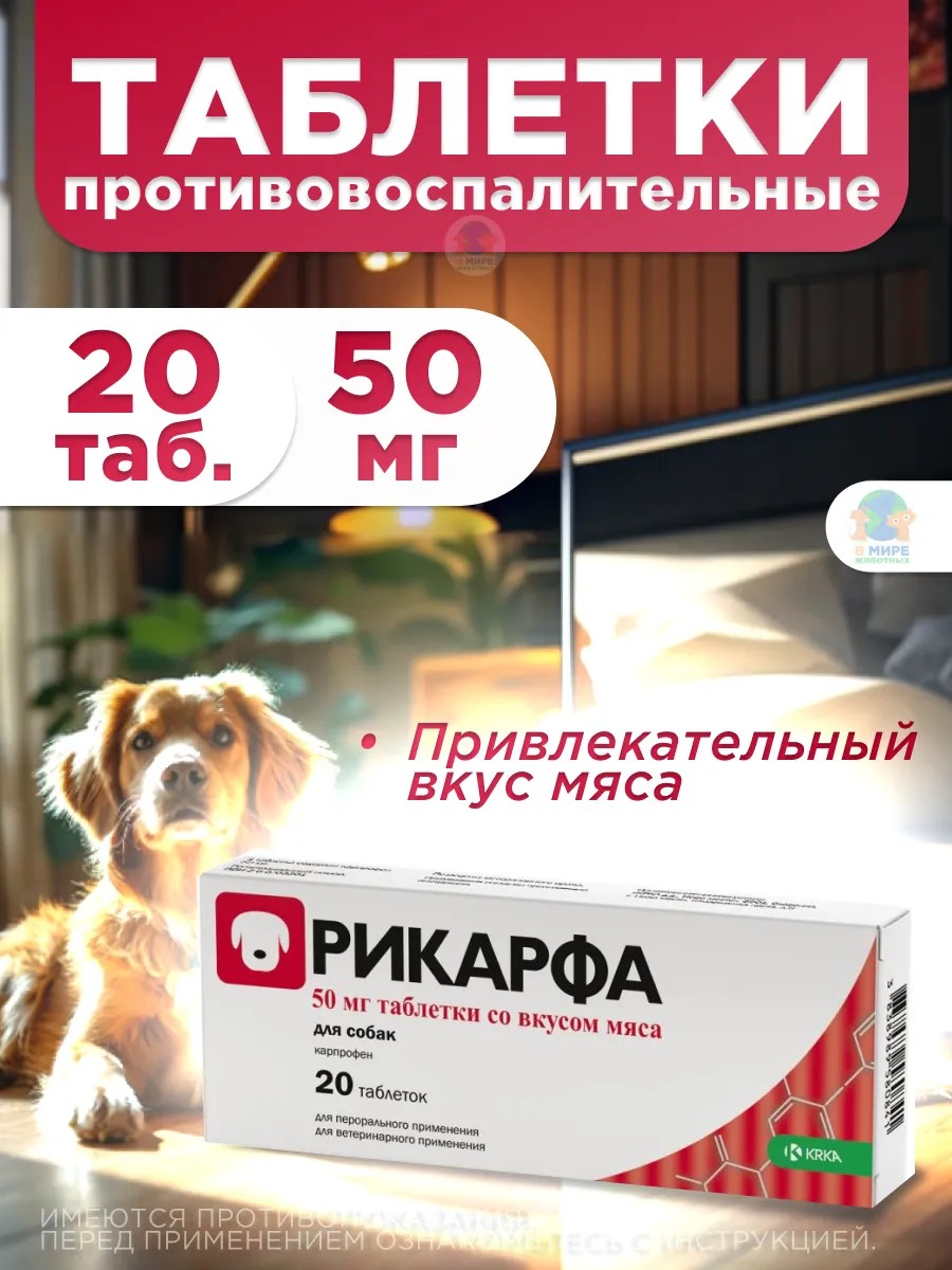 Откройте для вашего питомца мир комфорта и здоровья с таблетками Рикарфа для собак! Эти уникальные таблетки со вкусом мяса специально разработаны для облегчения боли и воспалений при заболеваниях опорно-двигательного аппарата.