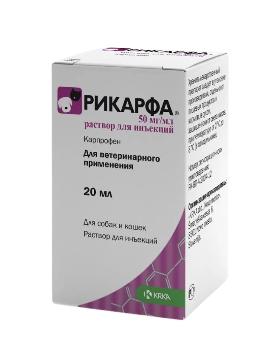 | Полное наименование товара | Рикарфа раствор для инъекций для собак и кошек 50 мг/мл, 20 мл |