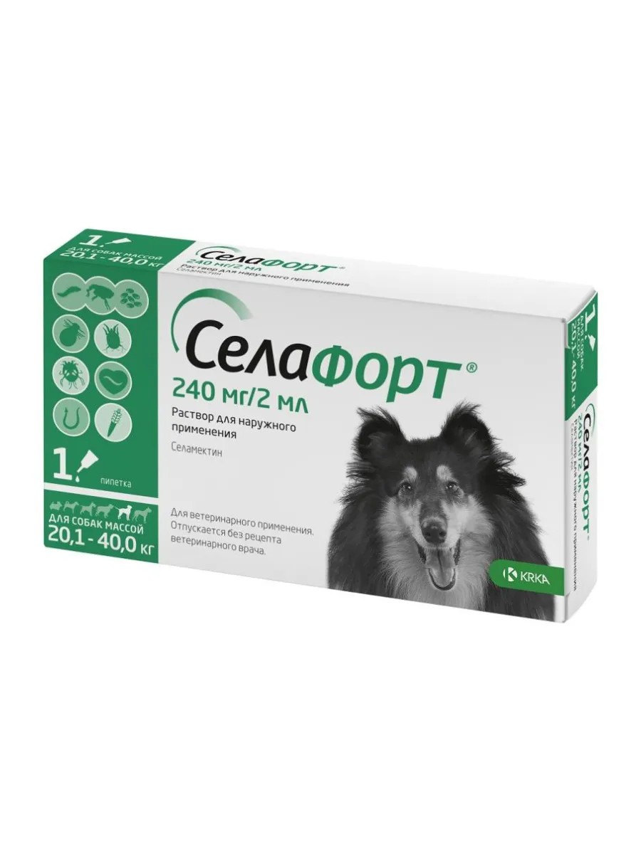KRKA Селафорт 12% 2 мл (240 мг) для собак 20.1- 40 кг, 1 шт