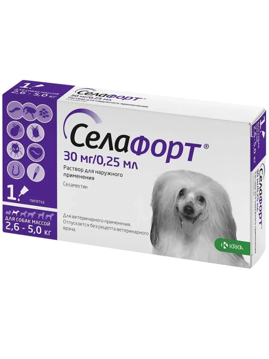 Селафорт 30 мг капли для собак весом от 2,6кг до 5 кг