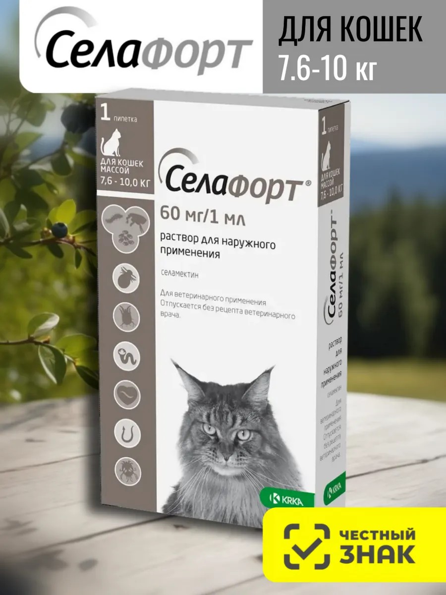 SelaFort is an antiparasitic drug belonging to the macrocyclic lactone group. Its active ingredient, selamectin, has a broad spectrum of systemic nematocidal, insecticidal, and acaricidal action. It is active against nematodes, insects, and sarcoptic mites infesting dogs and cats. It possesses larvicidal and ovocidal properties, interrupting the insects' development cycle. The drug's pharmacokinetic properties ensure good absorption of selamectin from the site of application and prolonged maintenance of therapeutic concentrations in the animal's organs and tissues, which ensures the destruction of parasites and protects animals from reinfestation for up to a month. Selamectin's mechanism of action is based on its ability to bind to receptors on parasite cells (muscle and nerve tissue), increasing membrane permeability to chloride ions. This blocks nerve and muscle cell conduction in nematodes, insects, and mites, leading to paralysis and death of the parasites. Given that mammals have receptors sensitive to selamectin located only in the central nervous system, and selamectin does not penetrate the blood-brain barrier, poisoning of dogs and cats is unlikely. Selafort is classified as a moderately hazardous substance in terms of its impact on the body. At recommended doses, it does not exhibit local irritant, resorptive-toxic, or sensitizing effects. It is well tolerated by cats and dogs of various breeds, including collies and related breeds. The drug is toxic to bees, as well as fish and other aquatic organisms. Indications: Selafort is prescribed to dogs and cats for therapeutic and prophylactic treatment of entomoses caused by fleas, lice, and chewing lice, otodectosis, sarcoptosis, hookworm, and toxocariasis, as well as for the prevention of dirofilariasis. Contraindications: Contraindications include hypersensitivity to any of the drug's components (including a history of hypersensitivity). Selafort should not be applied to wet and/or damaged skin. Pregnant and lactating females should use Selafort, if necessary, after consulting a veterinarian. Selafort should not be used in puppies and kittens under 6 weeks of age. Side Effects: When using the drug according to these instructions, side effects and complications are generally not observed. In rare cases, cats may experience alopecia at the application site, which usually resolves quickly without the use of medication. Dosage and Administration: Selafort is administered to dogs and cats by a single application to dry, intact skin using pipettes of various sizes. Before using the drug, remove the pipette from the blister and, holding it vertically, press on the cap so as to pierce the tip of the pipette. Then remove the cap and, parting the fur between the shoulder blades at the base of the neck, squeeze the contents of the pipette directly onto the animal's skin.