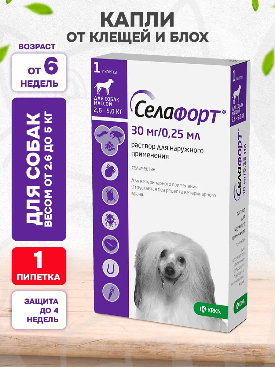 Селафорт капли от клещей блох глистов для собак 2,6 - 5 кг