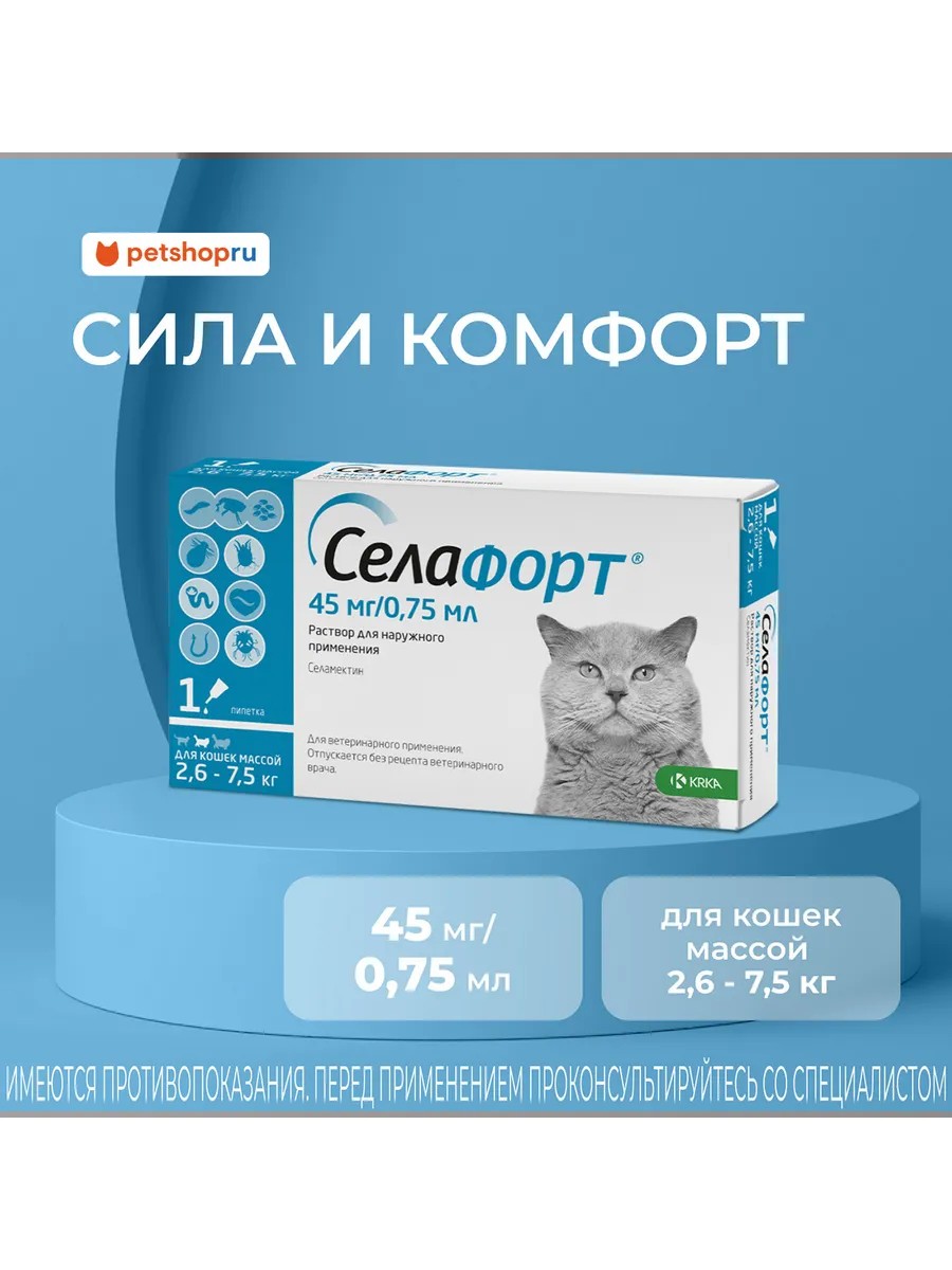Селафорт для кошек 2.6 - 7.5кг, 1 пипетка