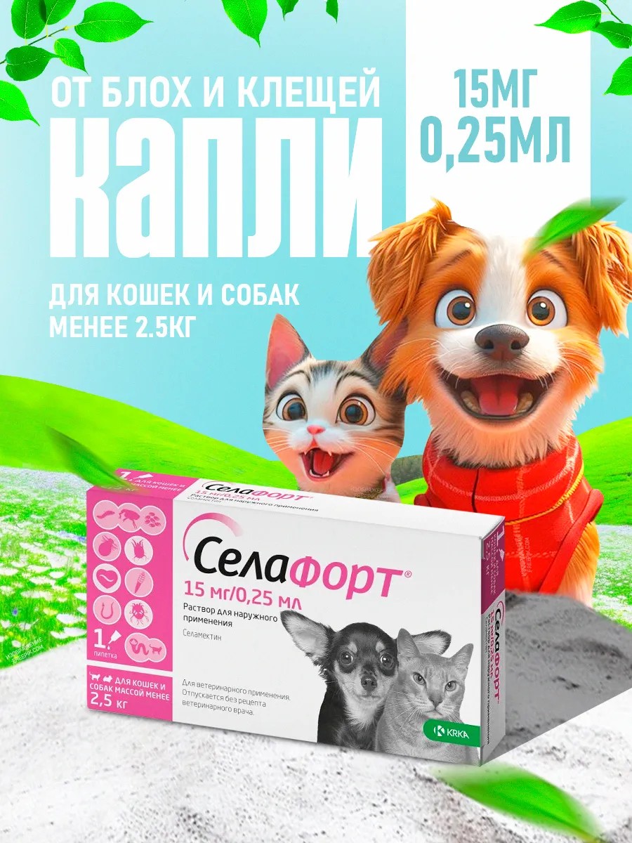 Забудьте о постоянном зуде, беспокойстве и дискомфорте вашего питомца. Селафорт обеспечивает длительную защиту и дарит вашему четвероногому другу здоровье и комфорт.