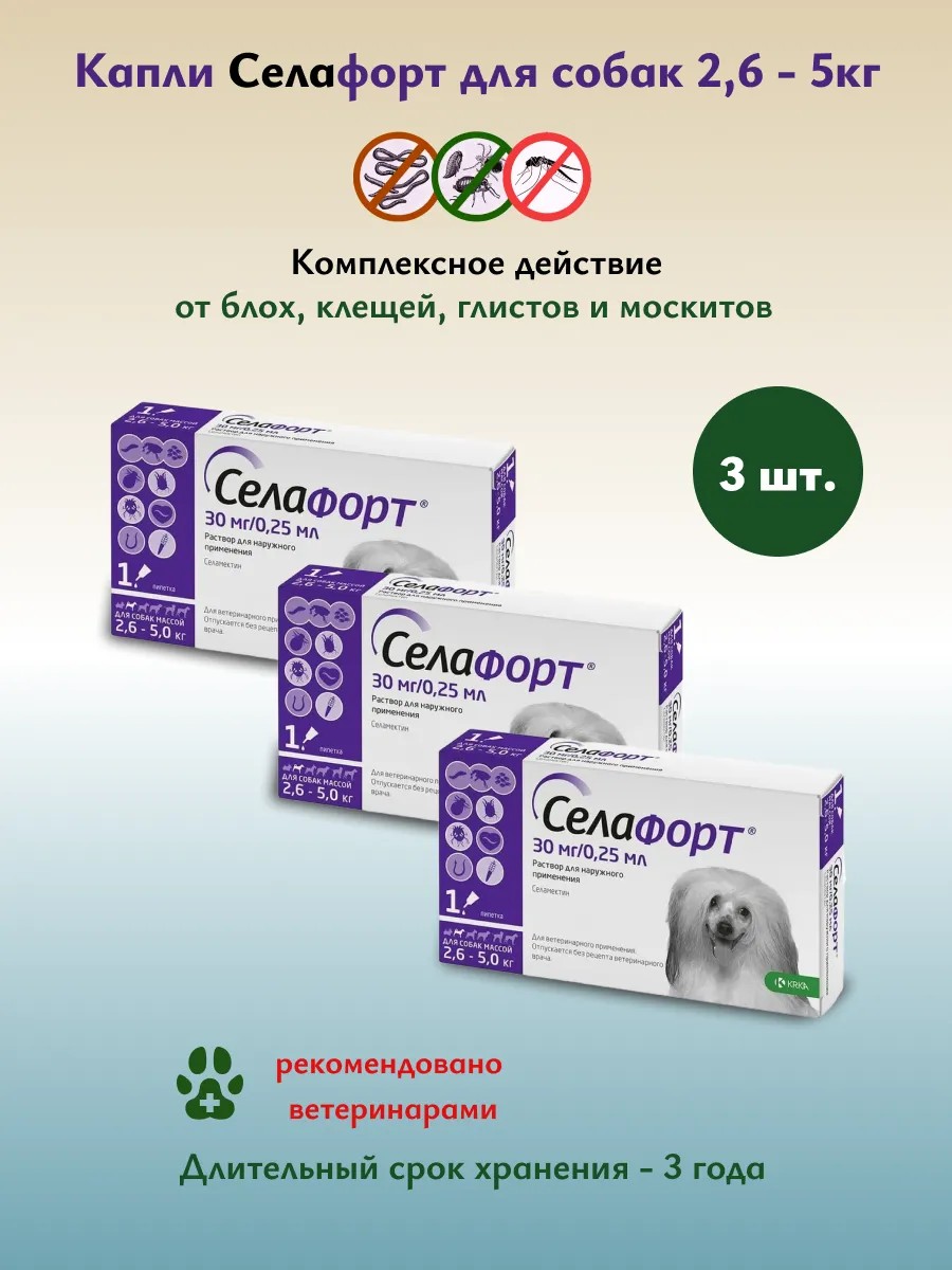 KRKA Селафорт 12% 0,25 мл от блох для собак 2,6-5 кг, 3шт