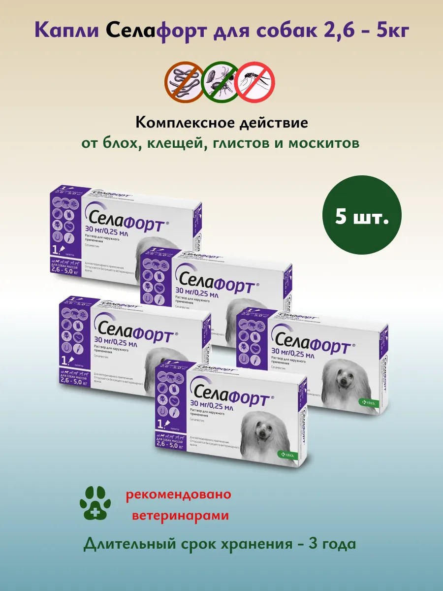 KRKA Селафорт 12% 0,25 мл от блох для собак 2,6-5 кг, 5шт