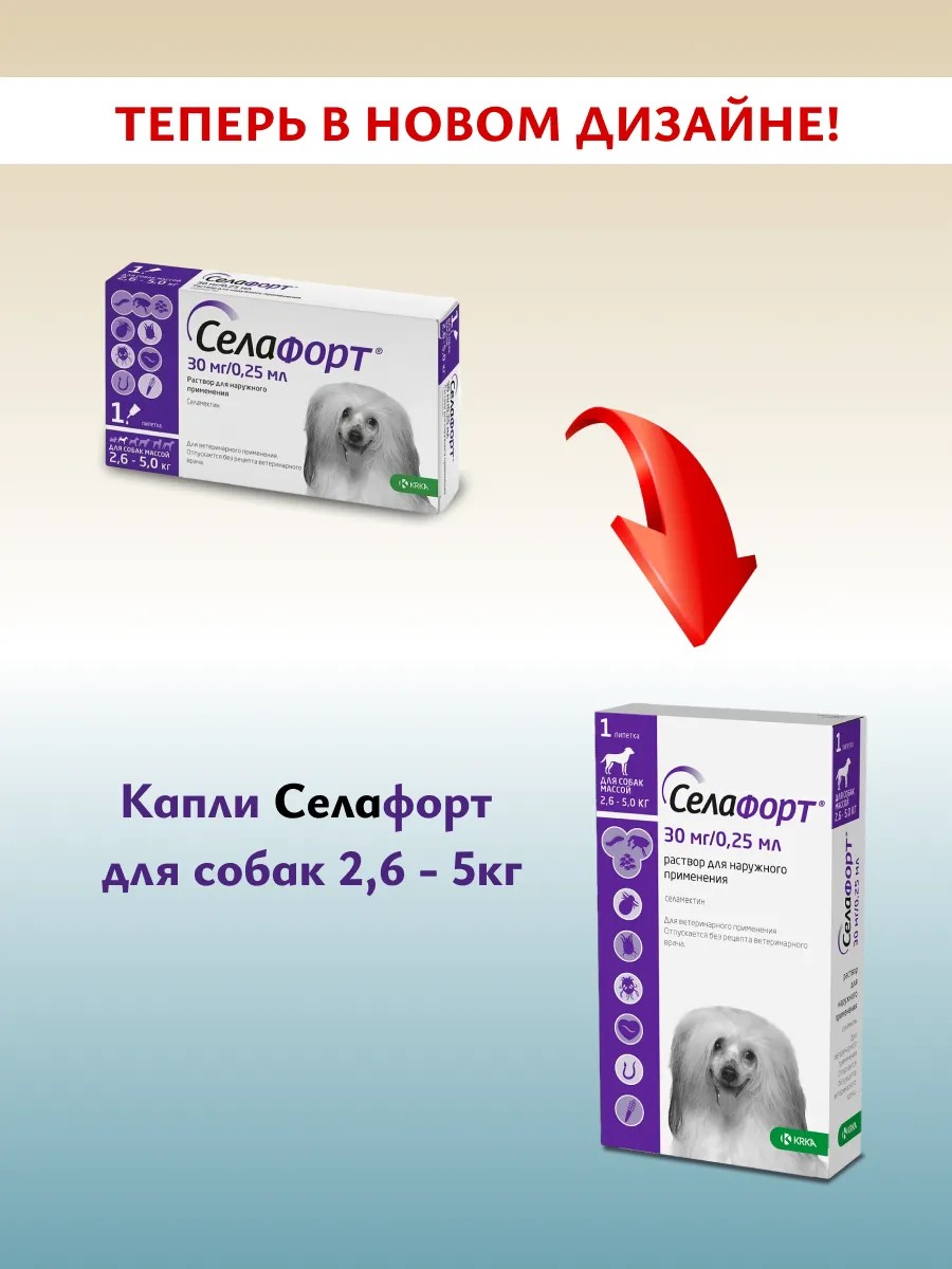 Селафорт — капли на холку для одновременной защиты вашего питомца от внешних и внутренних паразитов: блох, круглых кишечных гельминтов, ушного и чесоточного клещей, а также демодекоза. Селафорт — это оптимальный выбор для профилактики и лечения основных паразитов, вызывающих зуд! Одна пипетка для длительной защиты на протяжении месяца от блох, круглых кишечных гельминтов, ушного и чесоточного клещей, а также демодекоза. Впитывается за 30 минут и уже через 2 часа после обработки можно мыть животных с шампунем и допускать к детям! Не оставляет следов на шерсти благодаря запатентованному составу (Европейский патент IPN: WO 2018/167271 A1; IAN: PCT/EP2018/056667). Селафорт удобно применять: Прозрачная пипетка со скругленным носиком, Многоразовый колпачок позволяет при необходимости повторно закрыть пипетку и провести обработку в более удобное время. Преимущества Селафорта: Применяется для лечения блошиного дерматита, отодектоза (ушного клеща) и саркоптоза (чесотки) — паразитарных болезней, сопровождающихся зудом, расчесами и другими поражениями кожи, Хорошо переносится собаками разных пород, в том числе колли, шелти, аусси и т.д. Подходит для профилактики заражения сердечными гельминтами (дирофиляриозом), а также может применяться уже инвазированным животным. Разрешен самым маленьким щенкам с 6-недельного возраста без ограничений по весу.