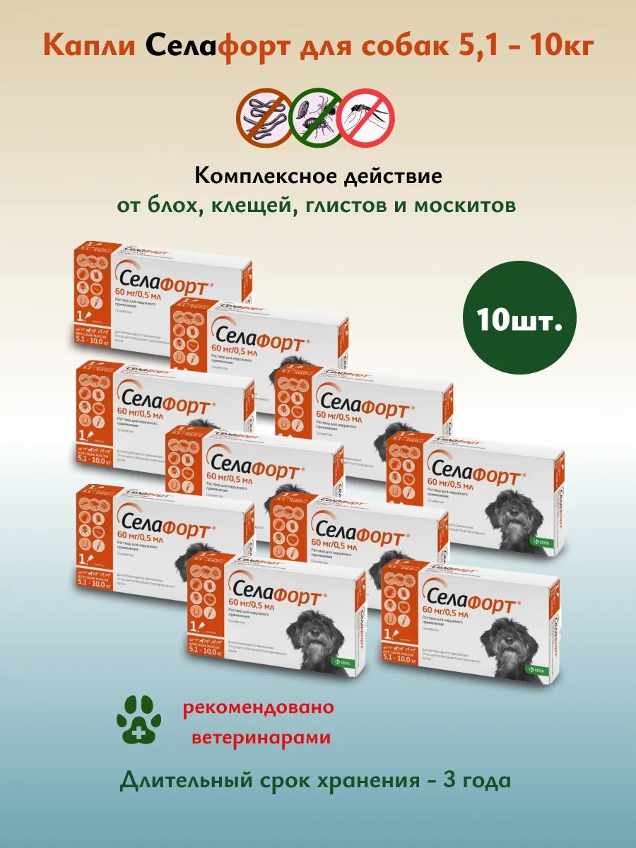 KRKA Селафорт 12% 0,5 мл от блох,для собак 5,1-10 кг, 10шт
