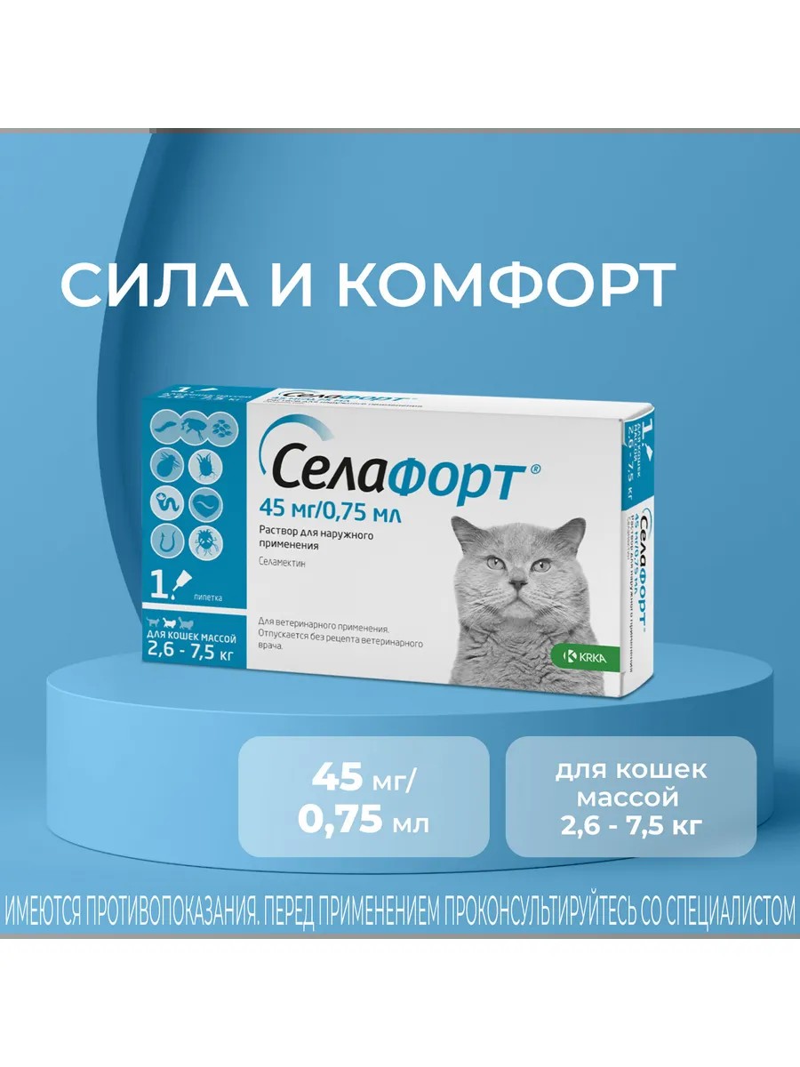 Селафорт 45 мг для кошек весом от 2,6 до 7,5 кг