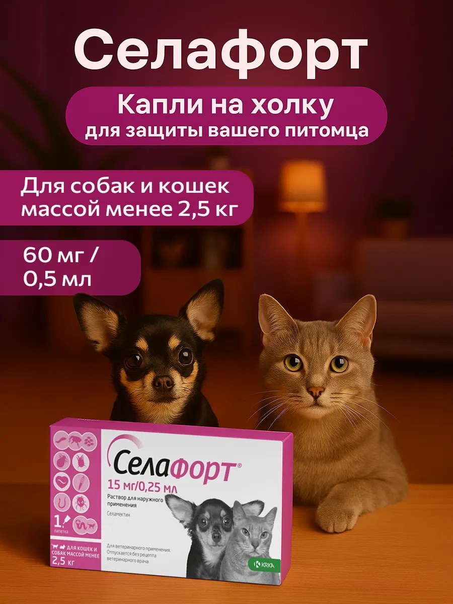 Забудьте о постоянном зуде, беспокойстве и дискомфорте вашего питомца. Селафорт обеспечивает длительную защиту и дарит вашему четвероногому другу здоровье и комфорт.
