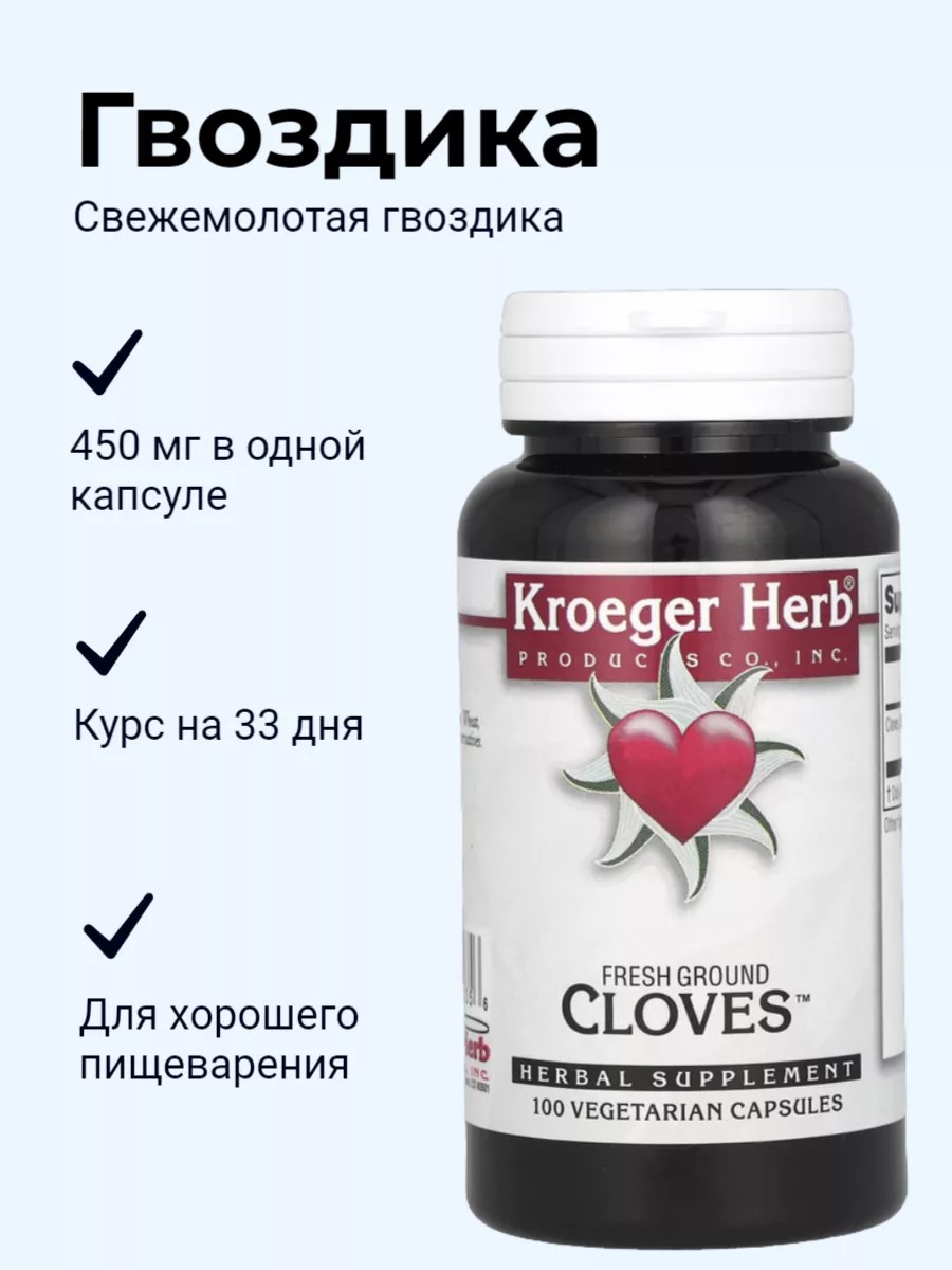 Kroeger Herb Co Гвоздика, Cloves, 100 капсул