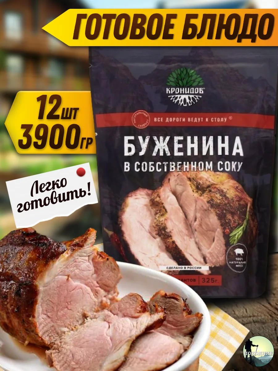 Буженина в собственном соку "Кронидов" - это настоящее гастрономическое наслаждение, которое подарит вам уют и комфорт даже в самых дальних походах или поездках. Откройте пакет, разогрейте и насладитесь нежным, сочным вкусом мяса, не тратя время на готовку. Этот восхитительный продукт станет вашим верным спутником в любых жизненных ситуациях!