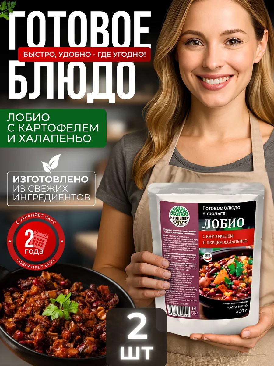 Кронидов Лобио с картофелем, готовая еда, 600г (2 упак.)